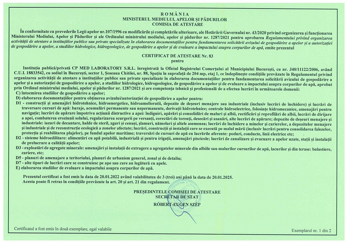 Laborator încercări de mediu, bilanțuri de mediu, studii de mediu.